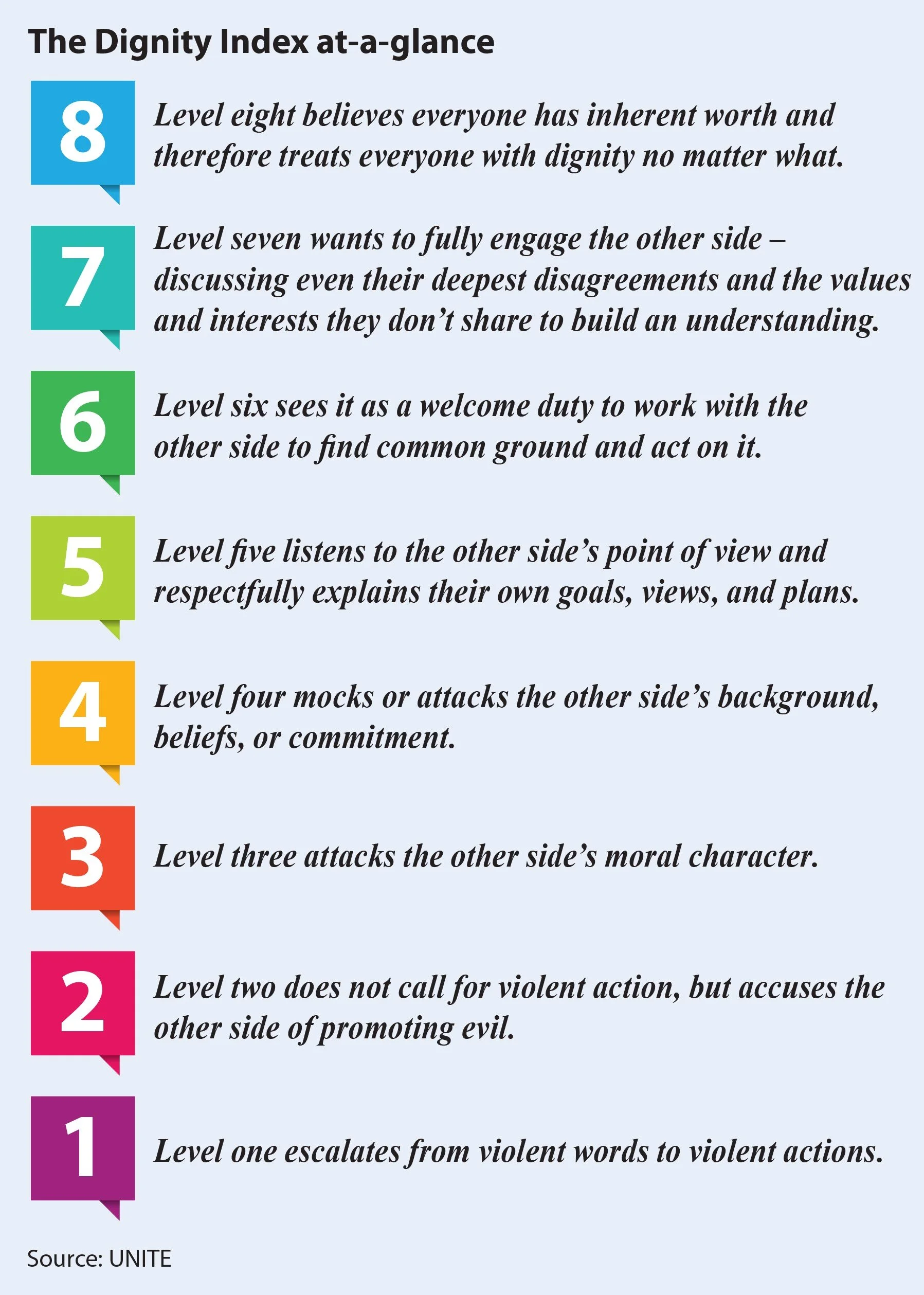 The Dignity Index is designed to prevent violence, ease divisions, and solve problems.